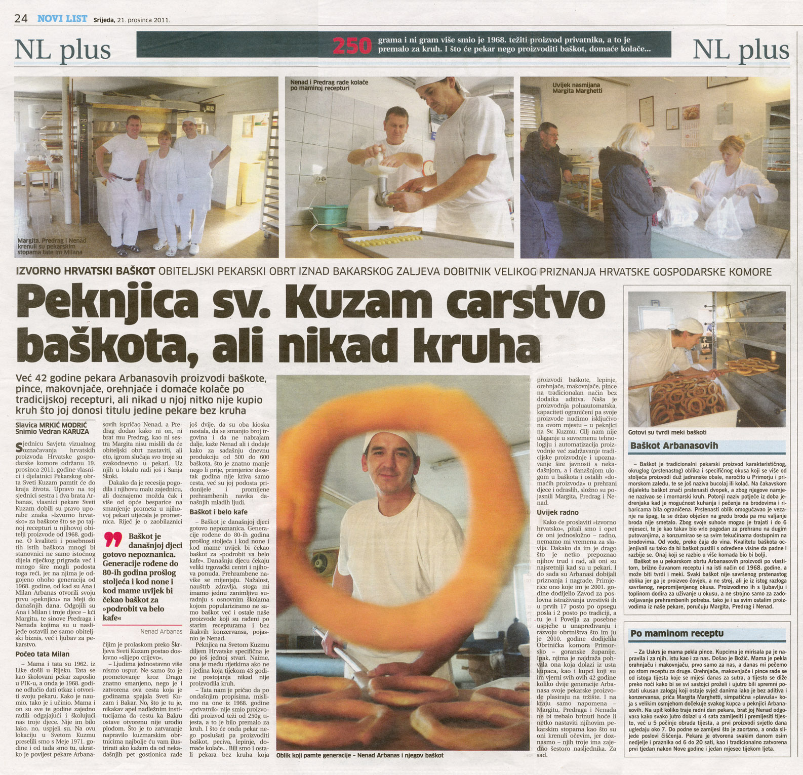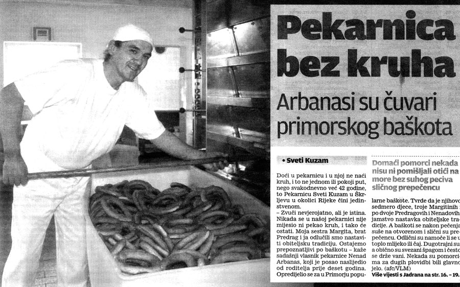 Ja sam sin pekara. Hrabrog malog čovjeka kojega je odgojila baka i školovala za pekara. Trbuhom za kruhom 60-tih je godina sa suprugom došao iz Like potražiti sreću u Rijeci. Zaposlio se u PIK-u dd i dobio troje djece. Nije bio zadovoljan. Želio je stvoriti nešto više za sebe, za nas i za Vas. Imao je viziju i hrabrost. Uz troje djece dao je otkaz u državnoj pekari, unajmio prostor u Bakru, Meja Gaj (neki se od Vas možda toga i sjećaju) i otvorio pekaru još 1968. godine koja od 1972. pa do danas radi u Rijeci, Sveti Kuzam 22.